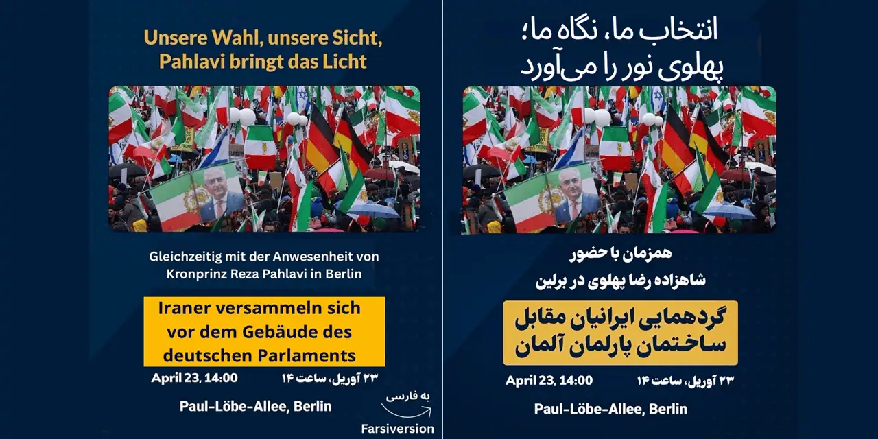 در تاریخ ۲۳ آوریل ساعت ۱۴:۰۰ در برلین، ما فرصت نادری داریم تا با هم نشانهای قوی بگذاریم. این روز نمادی از پیوستگی، شجاعت و مسئولیت است — و با حضور شاهزاده رضا پهلوی به لحظهای بسیار مهم تبدیل میشود.